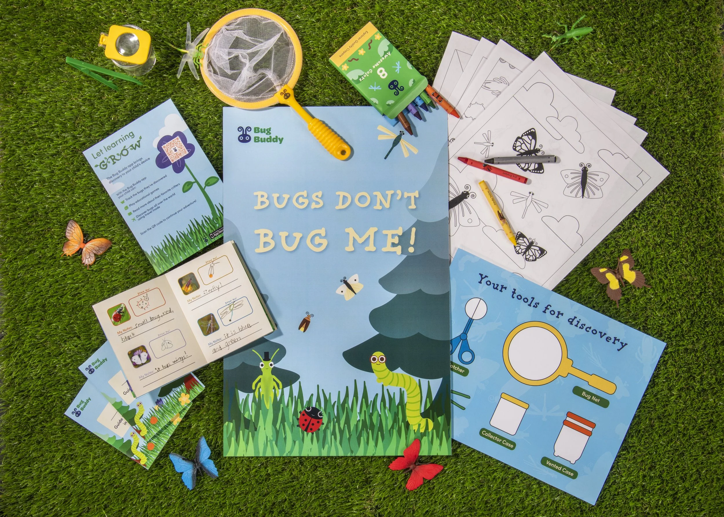 Bug Buddy’s main objective is to provide a multitude of engaging educational materials to elementary school children to encourage a connection with their environment. By using both physical and digital media outlets, the junior explorers can investigate bugs at home and on the go, bringing education everywhere.